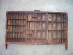 ANTIQUE PRINTERS DRAWER / PRINTER TRAY / SHADOW BOX / PRINT TYPE TRAY
