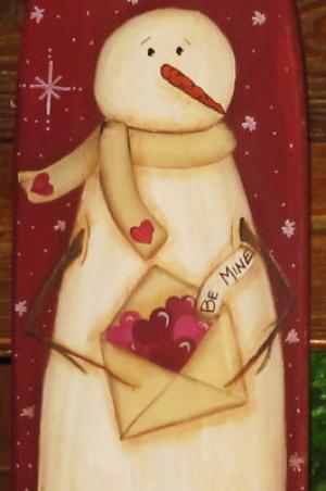 *~*PRIMITIVE*~* HP FOLK ART SNOWMEN ~ VALENTINE ~ HEARTS ~ BE MINE ~ STRETCHER