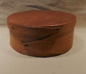 PRIMITIVE NEW ENGLAND RED FIRKIN/SUGAR BUCKET SIGNED GENUINE WOODCRAFTERY PRODUC