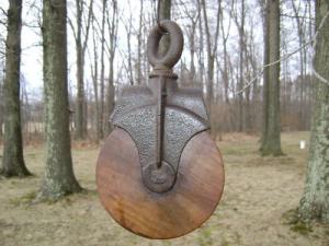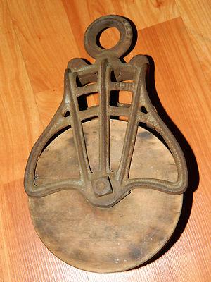Antique / Vintage Cast Iron / Wood Barn Pulley Farm Tool Hay Loft Rustic 1800's