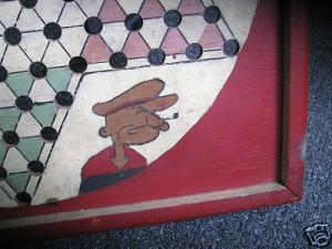 Folk Art Game Board/Popeye/Whimpy/Henry?/Chinese Checkers/Plywood/c.1930
