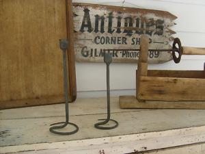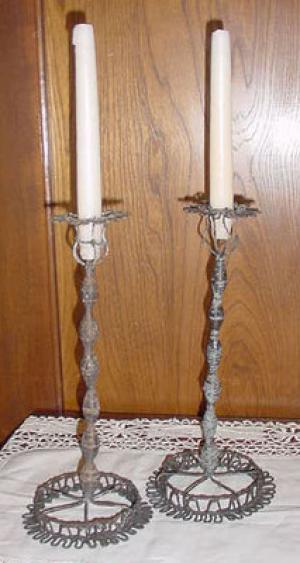 GREAT PAIR TALL OLD WIRE CANDLESTICKS VINTAGE