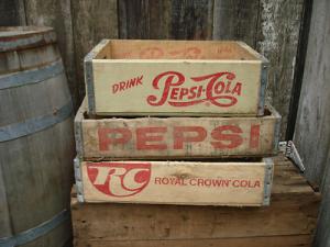 3 Old Vintage Wooden RC Cola & Pepsi Shipping Crates / Primitive Soda Sign Boxes
