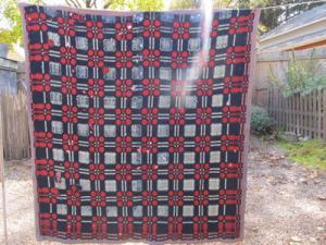 ANTIQUE HOMESPUN WOOL COVERLET STACK (2) AAFA