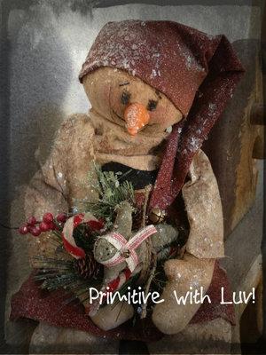 Primitive Winter Christmas Snowman "girl" snowgirl berries gingerbread man