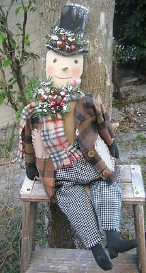 ♥ Large PRIMITIVE Dirty White Dapper Snowman Doll ♥RCP♥