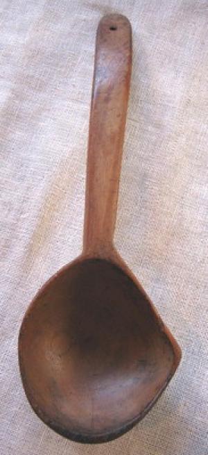 Old Primitive Wooden Dipper/Spoon-Hand Made-Well Used-Pouring Spout-Nice Patina