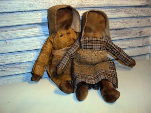 PRIMITIVE FOLK ART HANDMADE HANDCRAFTED PRAIRIE ORNIE DOLL BOWL FILLERS LOT 2