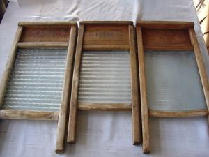 3 ANTIQUE VTG PRIMITIVE WOOD/GLASS WASH BOARD -- LOT OF 3--OLD ESTATE