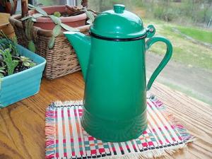 Vintage Antique Enamelware Green Coffee Pot Beautiful Color!