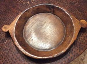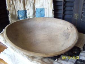 Primitive Out of Round Farmhouse Wood Doughbowl with Make Do Repair