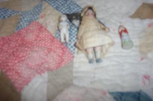 Early Old Miniature dolls Bisque China Chippy Cottage Naive Rare Lot of Three