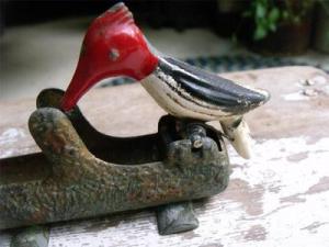 Old Vintage Metal Woodpecker Shaped Toothpick Holder Great Patina Works Too!