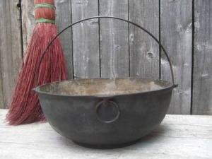 Old Black Cast Iron WAGNER Handled Pot Cauldron Vtg Kitchen Halloween