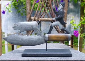 VINTAGE FOLK ART PRIMITIVE PIG TO MARKET BUTCHER SHOP SIGN