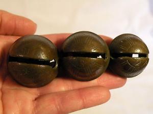 Lot ANTIQUE VTG # 4 3 2 BRASS SLEIGH BELL Old Horse Bell 1800s Petal Horseshoe A