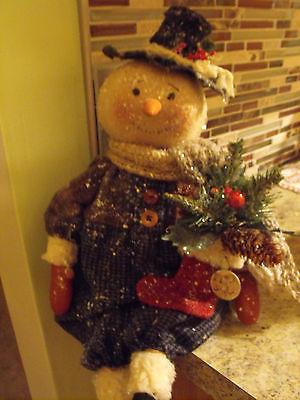 FoLk Art PrimiTive Winter ChrisTmas SNOWMAN DOLL Tree Topper Table DecoraTion
