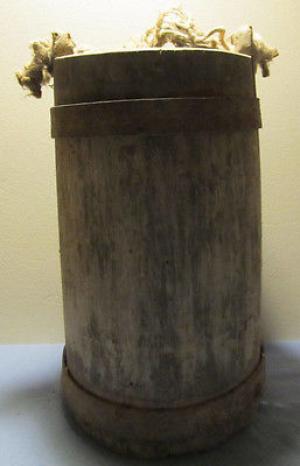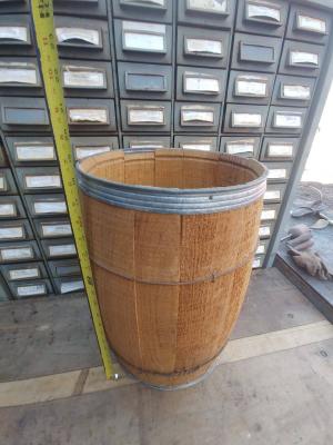 Vintage Wood Nail Keg Primitive Barrel Wire Wrapped 19" large size