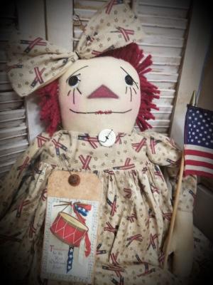 Primitive Raggedy Ann Doll w/ Flag ~*~ Annie ~*~ USA ~*~ Americana ~*~