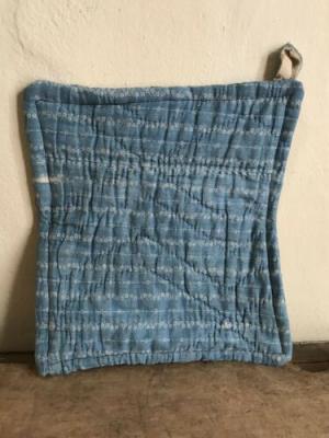 Large Early Antique BLUE CALICO Handmade Pot Holder Peg Rack AAFA Textile