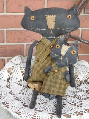 Primitive Cat Doll w her Baby Kitty Spring Summer Decoration Folk Art