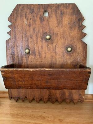 ANTIQUE Primitive FOLK ART WOOD CARVED Candle Box – WALL POCKET