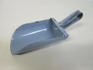 ANTIQUE GREY ENAMELWARE GRAIN OR COUNTRY STORE SCOOP IN USED CONDITION
