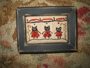 Primitive tiny Sampler~The 3 Black Cats~ Halloween Folk Art ~Old Textile