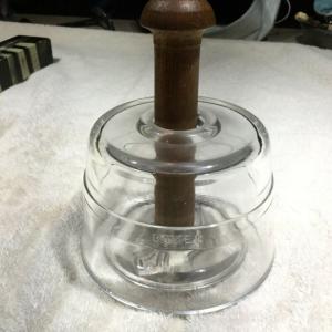 VINTAGE GLASS FLEUR-DE-LIS PATTERN BUTTER MOLD IN GOOD CONDITION