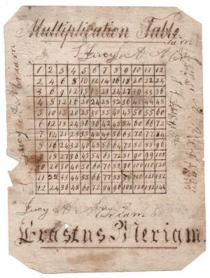 Early 34Multiplication Table34 Hand Done and Signed by Erastus Meriam 1800