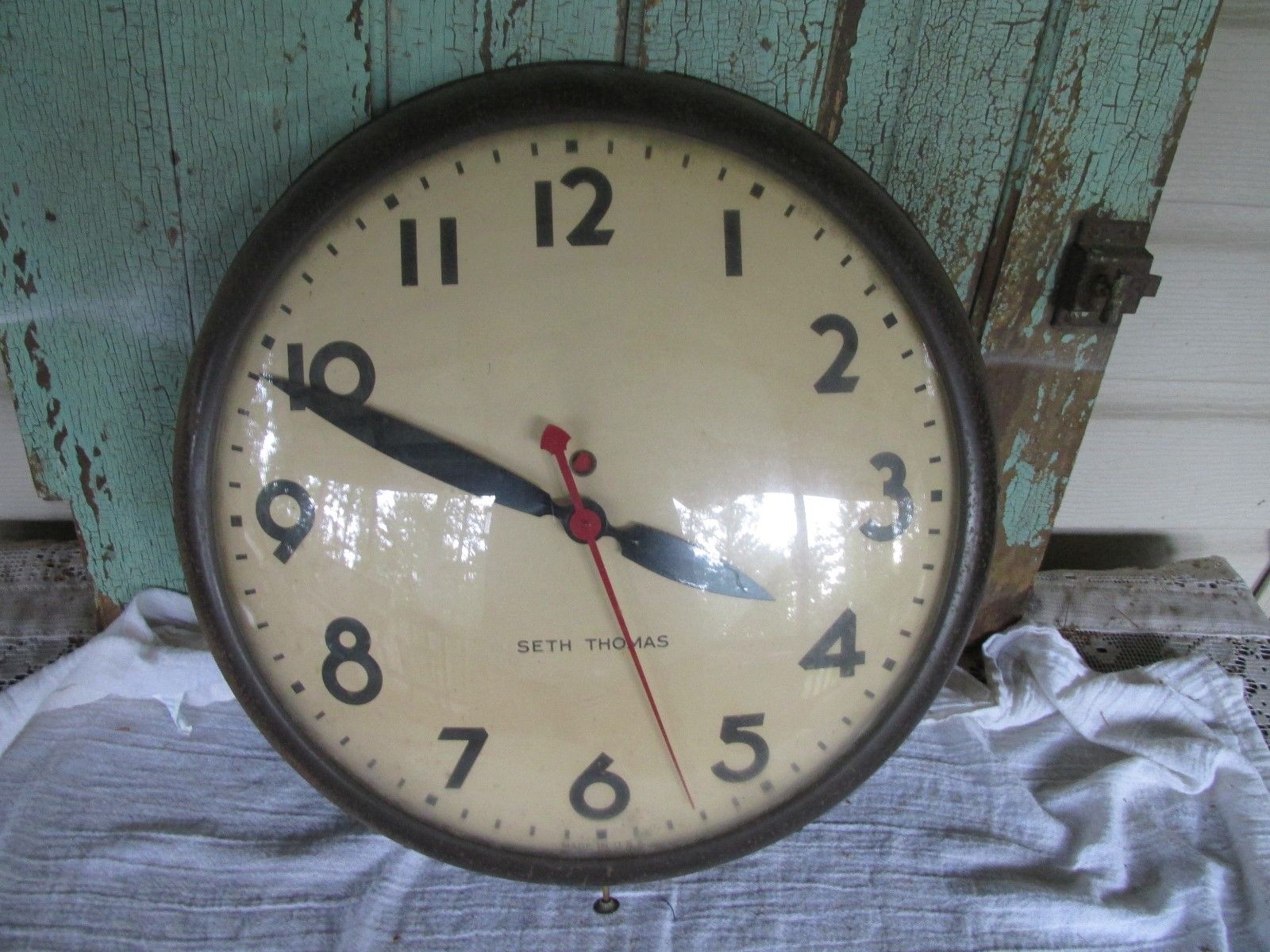 ANTIQUE VINTAGE LARGE ROUND INDUSTRIAL TYPE SETH THOMAS WALL CLOCK NEEDS WORK