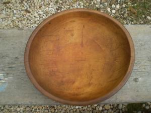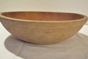Large Old Primitive Round Wooden Dough Bowl - 16.5" Wide AAFA