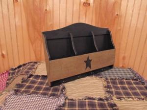 PRIMITIVE WOOD MAIL HOLDER KEY ORGANIZER BLACK TAN CRACKLE COUNTRY STAR DECOR