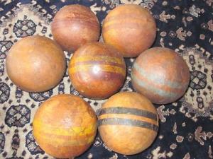 7 Antique Vintage Primitive Decor Wood Wooden Stripe Lawn Croquet Balls