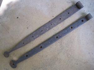 Vintage Pair Primitive Heavy-Duty Hand-Forged Iron Barn Door Strap Hinges~1850's