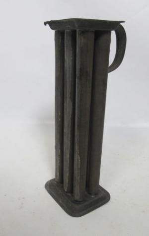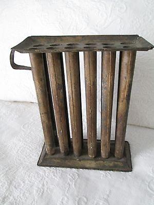 Antique 19th C Primitive Tin Candle Mold 6 Tube Tapered w/ Handle Folk Art yqz