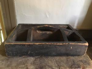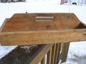 Antique hand made divided wooden carpenter tool box/carrier - primitive decor