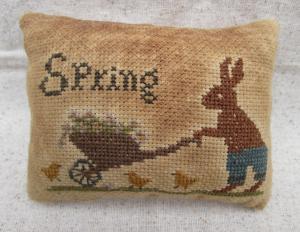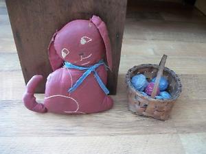 Primitive Handmade Cross Stitch Spring Rabbit Pillow Tuck 4 1/2" x 3 1/2"