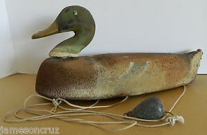 Antique Decoy Carved Wood Sawdust Rubber Head String Weight Duck Michigan