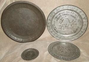 Antique Lot Tin ABC Alphabet Plates 1800's Childrens Dishes COCK ROBIN SPARROW &