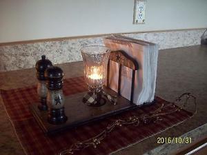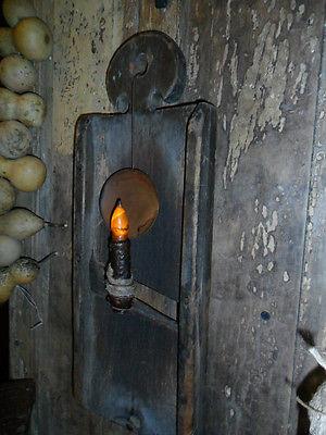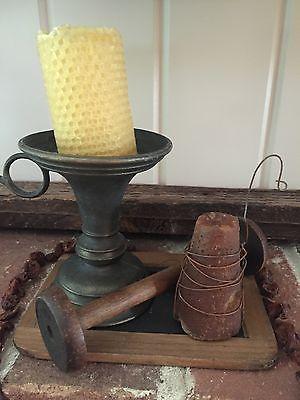Primitive Old Slaw Cutter Candle Board,Antique Lollipop Top, Rustic w/Reflector