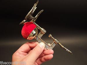 Primitive Antique Style, Brass Victorian Figural Bird Sewing Clamp Pin Cushion