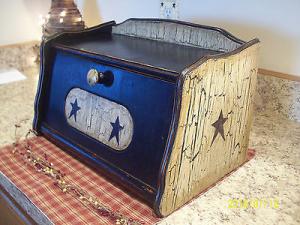 PRIMITIVE CRACKLE BLACK STAR WOOD BREAD BOX COUNTRY FARMHOUSE DECOR