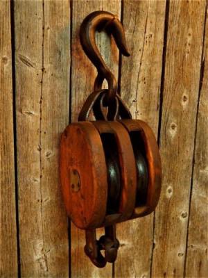 Antique Primitive Wood Double Barn Pulley "Iron Bushed" w/ Star STUNNING!