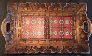 Tramp Art Wood Wooden Tray Hand Carved Design Antique Vtg Orig Primitive Rustic