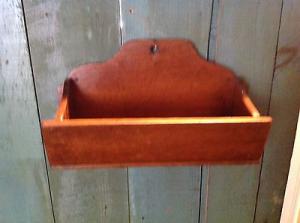Primitive Colonial Lollipop Handle Painted Wall-Shelf Box W/drawer