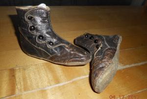 AAFA ANTIQUE BABY HIGH TOPS SHOES BOOTS ORIGINAL BLACK LEATHER #2 of 2