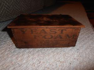 VINTAGE ANTIQUE WOODEN YEAST FOAM DOVETAILED BOX W/LID