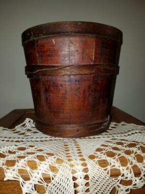 Vintage Primitive Wood Firkin Sugar Bucket 7" Woodcroftery
