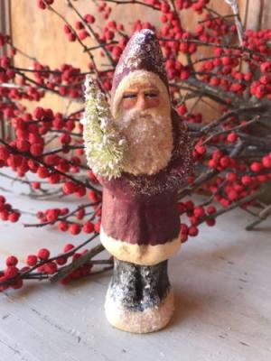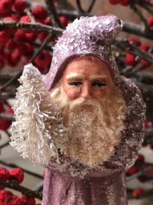 Early Holiday Style Santa ~4 1/2" Icy Purple Folk Art Christmas Belnickle w/tree